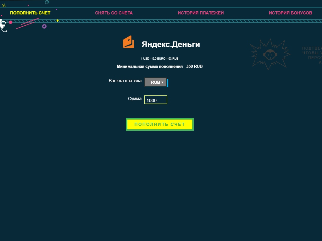 - При переводе более 6 000 рублей за раз заведение должно подтвердить данные пользователя. Проверка осуществляется на протяжении 48 часов с момента запроса со стороны игрока;