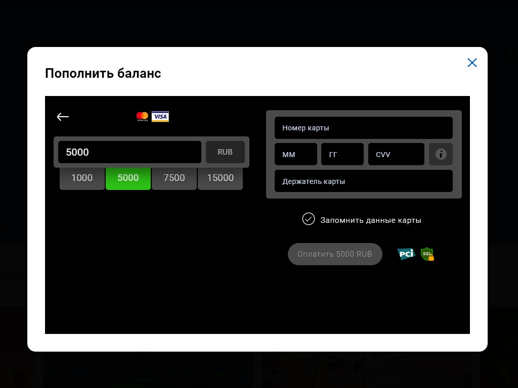 | Кредитные карты VISA/MasterCard | Карты всех банков поддерживаются на сайте Vulkandeluxe club и могут привязываться к профилю. Чтобы делать депозиты достаточно проверить настройки онлайн платежей по карте. | Зависит от банка | 81% | Высокое |
