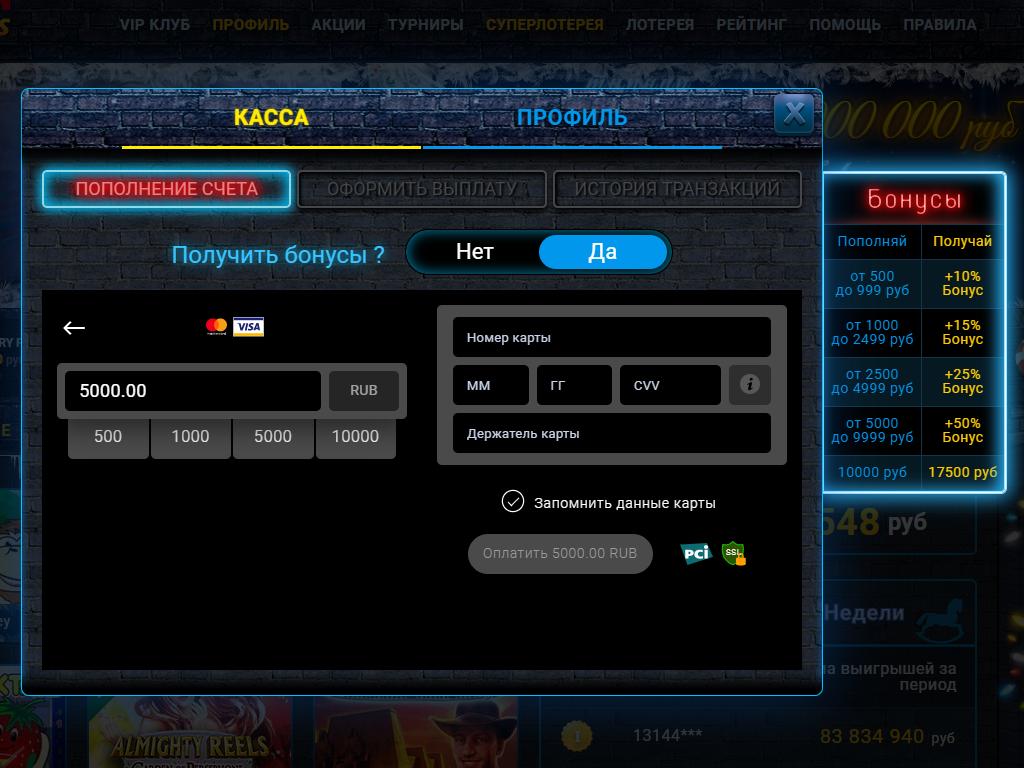 Вулкан Старс Россия – вывод реальных выигрышей в личном кабинете