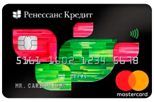 В течении 55 дней держатели карты «Ренессанс кредит» могут пользоваться заемными средствами без процентов. Совершая покупки в онлайн-магазинах, клиенты банка могут получить кешбек до 10%. Комиссия на получения денежных средств наличными в банкомате составляет 2.9% + 290 RUB.